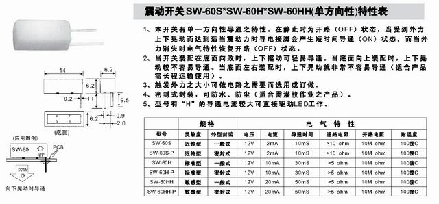 震動開關(guān)SW-60SxSW-60HxSW-60HH(單方向性)