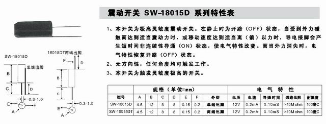 震動(dòng)開關(guān)SW-18015D系列