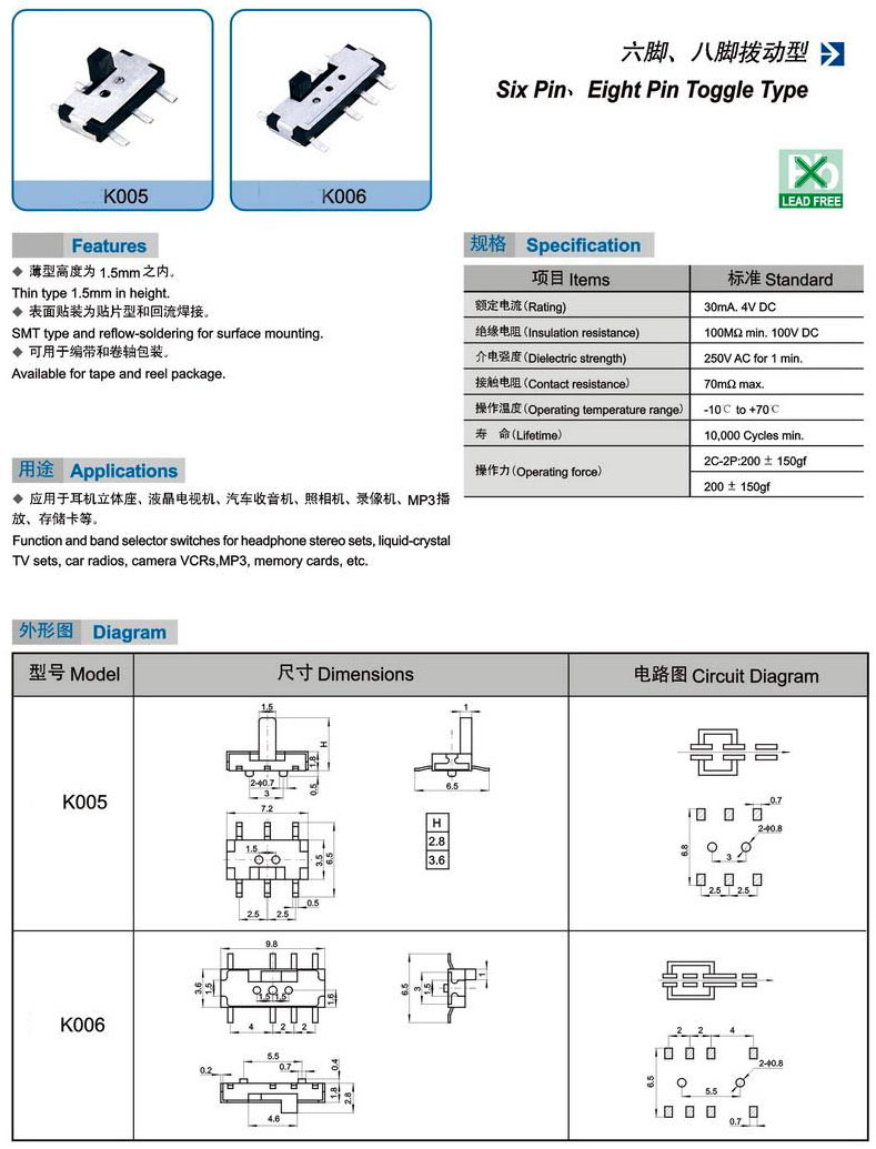 K005 K006(Six Pin、Eight Pin tOGGLE Type)六腳、八腳撥動(dòng)型