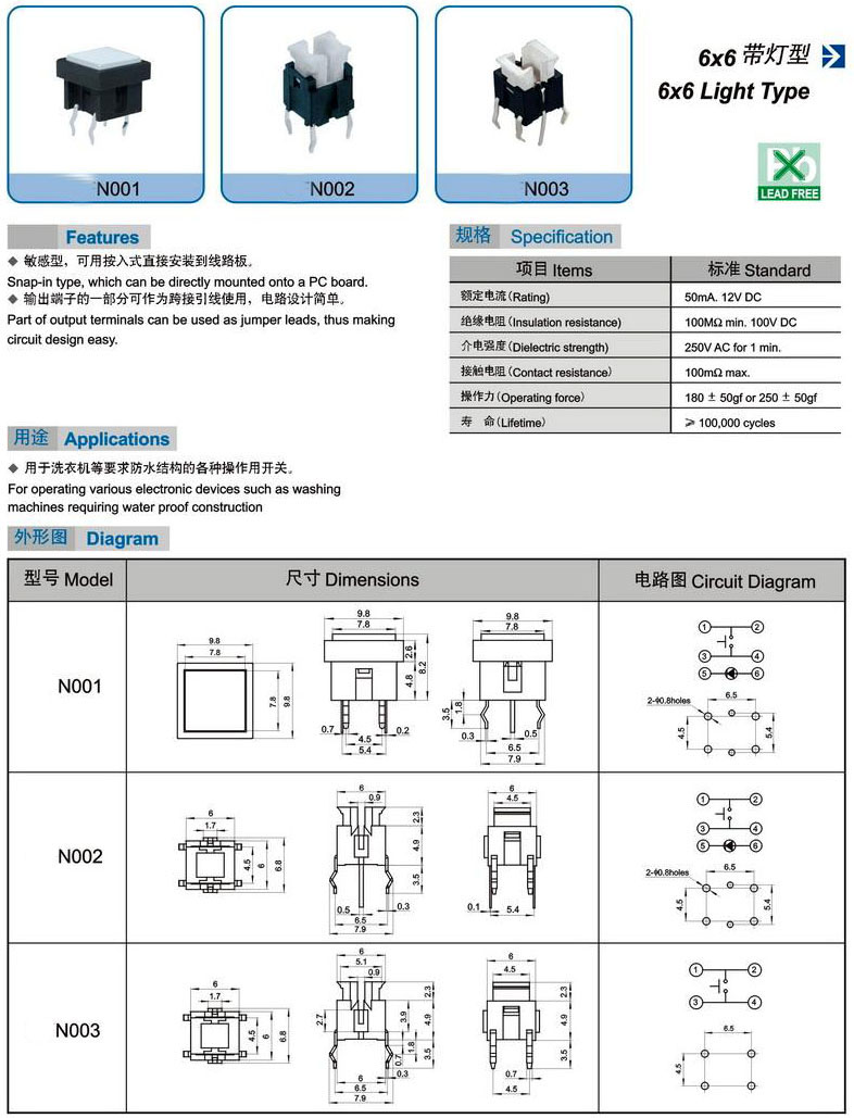 N001 N002 N003(6X6 Light Type)帶燈型